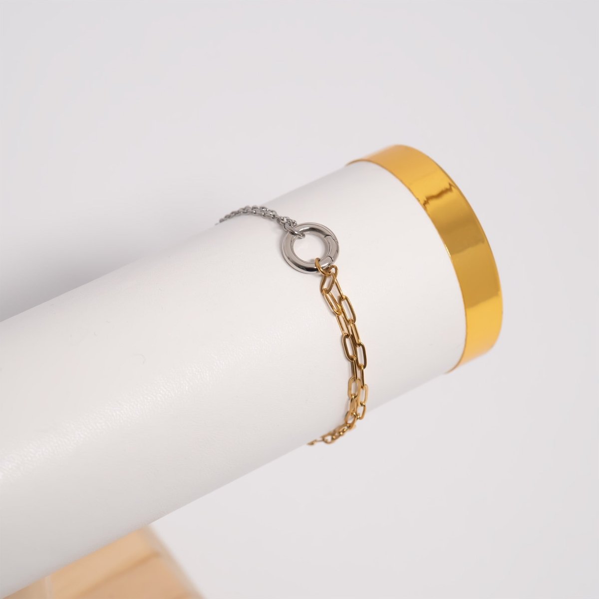 The Elemental Paperclip Rope Bracelet flows seamlessly from polished silver to warm 18K gold in one continuous chain—eliminating the "which jewelry matches today?" decision entirely. It works with your silver rings and gold watch, with coffee runs and client meetings.